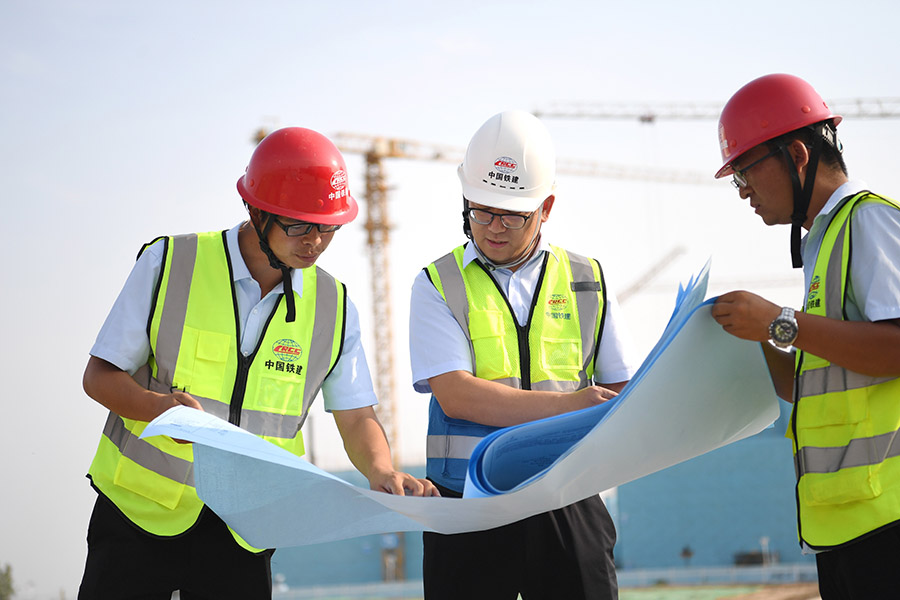 中国铁建投资集团工作人员在廊坊临空经济区建设项目现场工作(2020年9月22日摄)。新华社记者 朱旭东摄