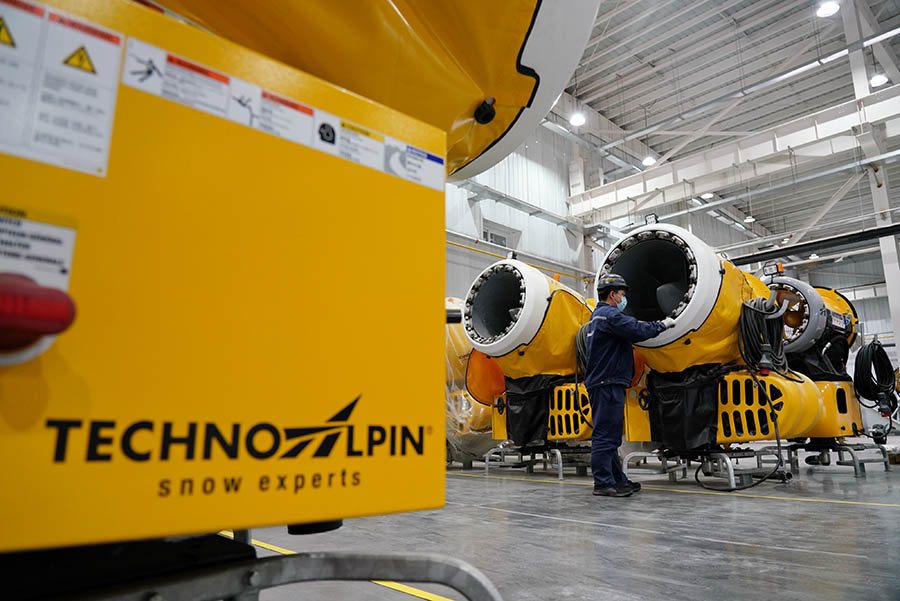 天冰冰雪设备张家口有限公司工人在厂房内保养检修造雪设备(2021年5月20日摄)。新华社记者 牟宇摄