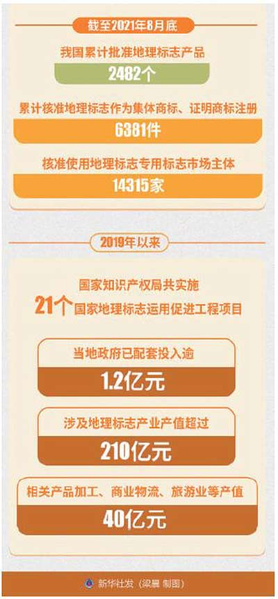 “在我国,地理标志是与‘三农’联系最为密切的一种知识产权。”中国人民大学法学院知识产权法教研室主任万勇指出。据统计,截至2021年8月,我国累计批准地理标志产品近2500个,核准地理标志作为集体商标、证明商标注册6000多件,相关产值逾万亿元。发展地理标志特色产业,成为培育区域特色经济、实现富农兴农的长远之计。