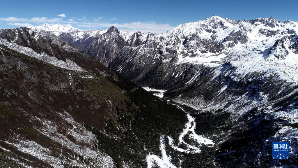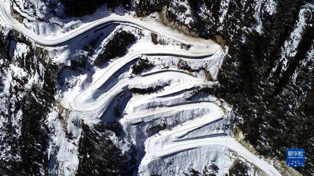 通往西藏洛扎县拉郊乡杰罗布村的道路(1月17日摄,无人机照片)。新华社记者 韩曦乐 摄