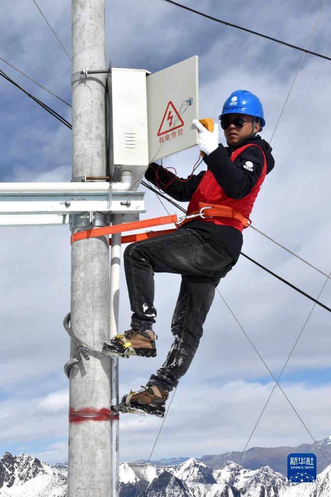 西藏洛扎县供电公司技术员在检修供电线路(1月17日摄)。新华社记者 陈尚才 摄
