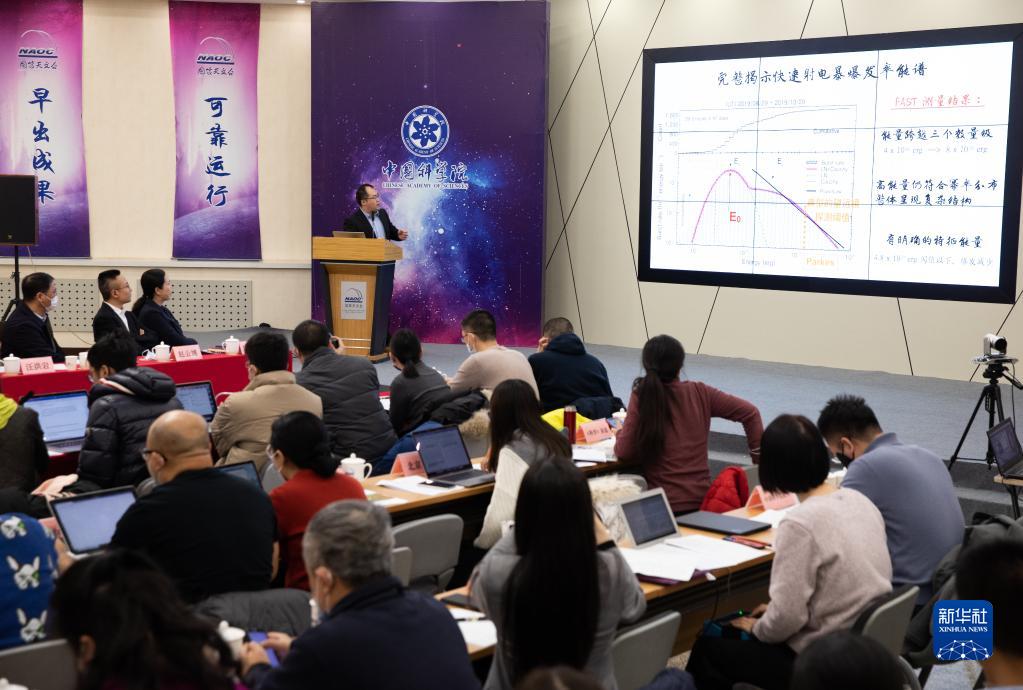 1月5日,在中科院国家天文台举行的新闻发布会上,国家天文台王培在介绍FAST在快速射电暴领域的重大成果。新华社记者 金立旺 摄