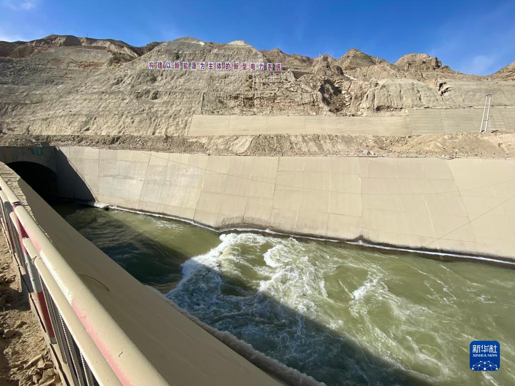 位于青海省海南藏族自治州境内的羊曲水电站部分导流明渠(1月26日摄)。新华社记者 王金金 摄
