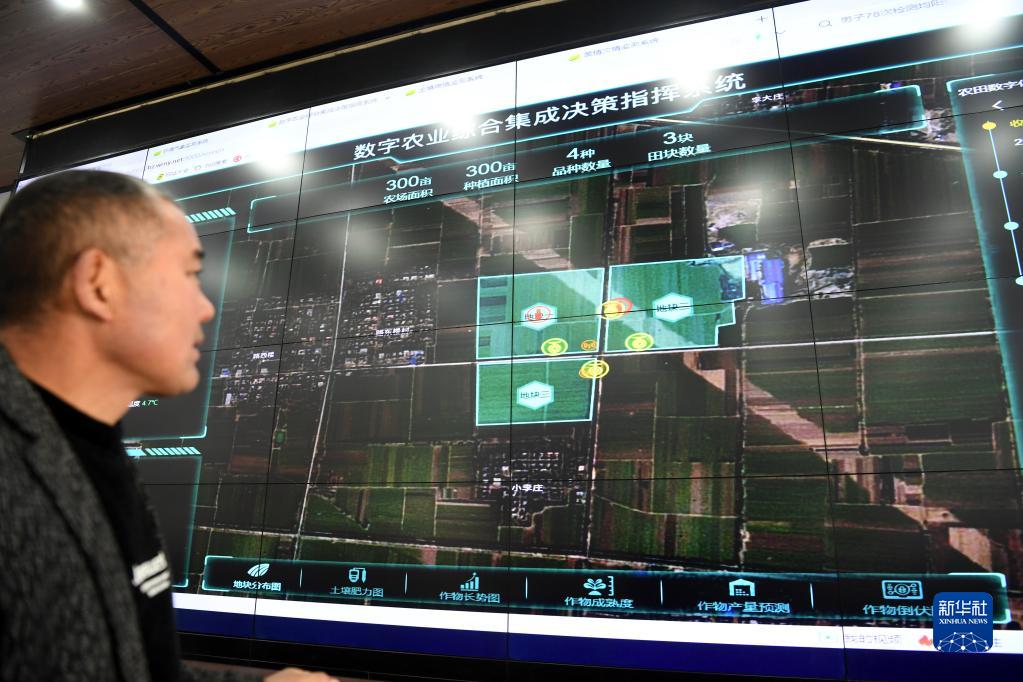 2月11日,安徽省亳州市谯城区赵桥乡“无人农场”工作人员通过“农场大脑”监控麦田情况。新华社记者 刘军喜 摄