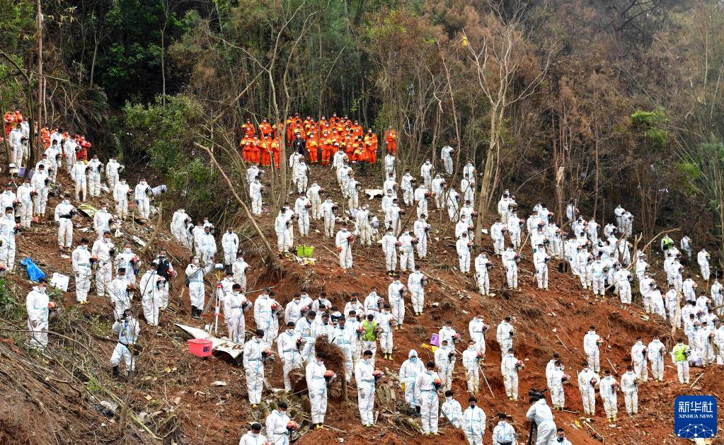 目前,指挥部仍在全力组织开展飞机残骸、遗骸遗物和各类物证资料的搜寻工作,继续做好各项善后处置工作,同步开展事故调查。