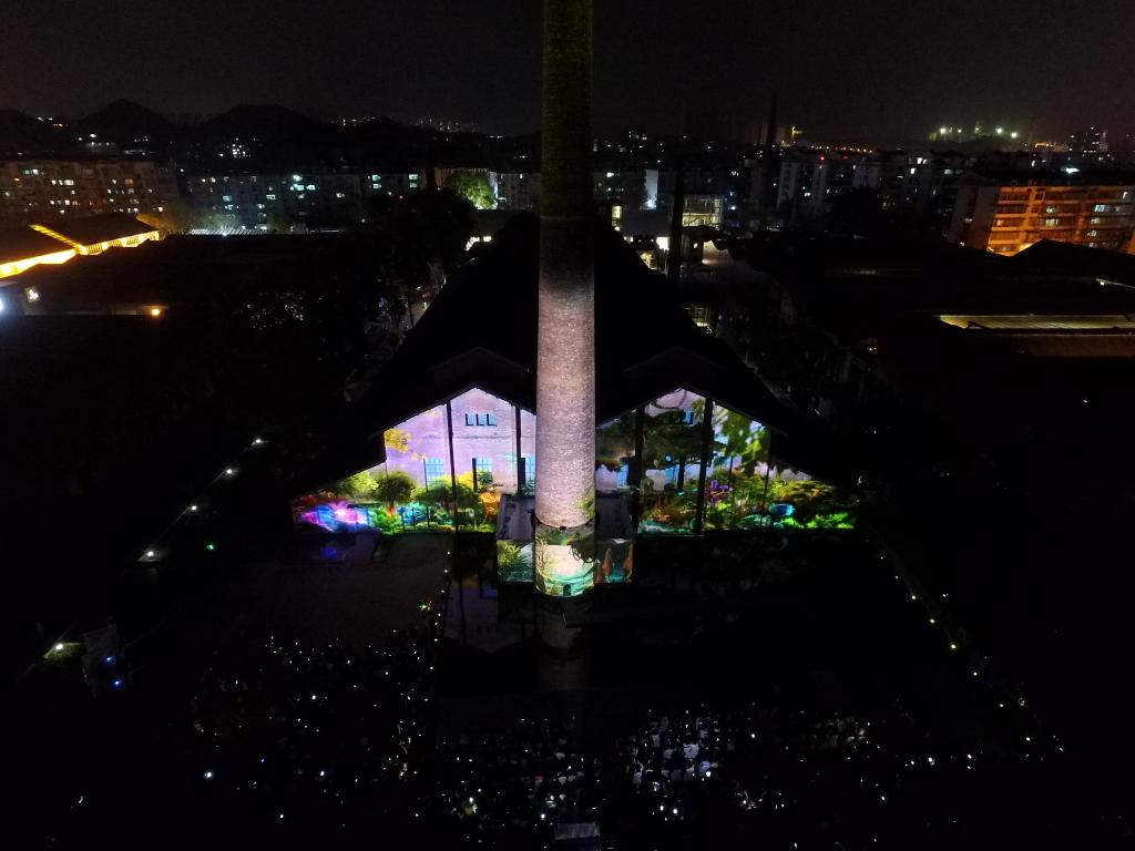 仰望夜空,包豪斯厂房的锯齿状屋顶,被光带勾勒成明亮的音符;标志性的大烟囱高高耸立,仿佛诉说着此间的沧桑变幻——这方占地197亩、建筑面积8.9万平方米的文创街区,以原国营宇宙瓷厂工业旧址为核心区打造,将古老与年轻融为了一体。