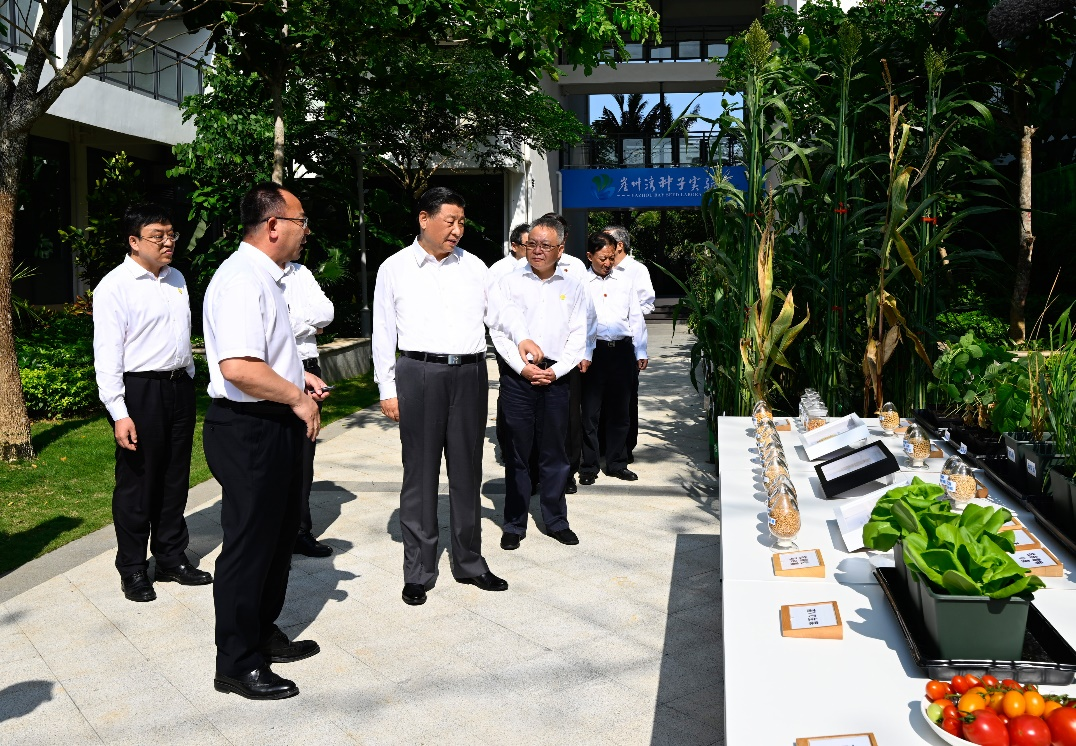 2022年4月10日下午,习近平在位于海南省三亚市崖州湾科技城的崖州湾种子实验室考察。新华社记者 李学仁 摄