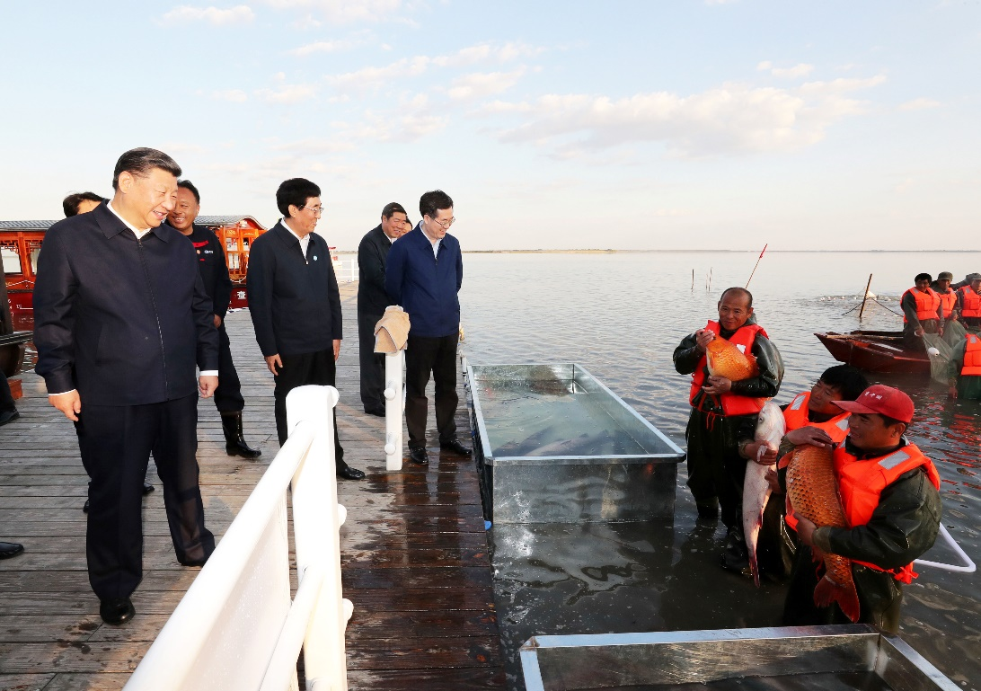 2018年9月26日下午,习近平在吉林查干湖了解渔民捕捞作业情况。新华社记者 鞠鹏 摄