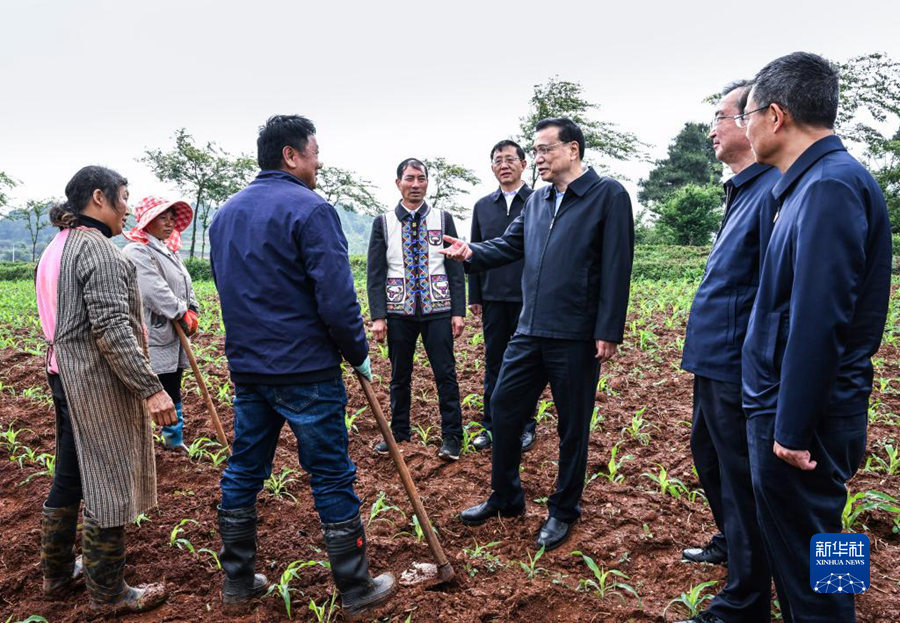 在长坡彝族村,李克强走进玉米地察看苗情,了解种粮成本和收入。农民反映国家农资补贴减轻了成本压力。李克强说,粮食足天下安,种粮是硬道理。现在农资价格仍在高位,要再扶农民一把,尽快再发放一次农资补贴。他与村民拉家常,小微企业主、个体户反映当前困难大、还贷难。李克强说,要把中小微企业、个体工商户贷款展期、延期还本等政策落实到位,并抓紧出台阶段性缓交利息政策。