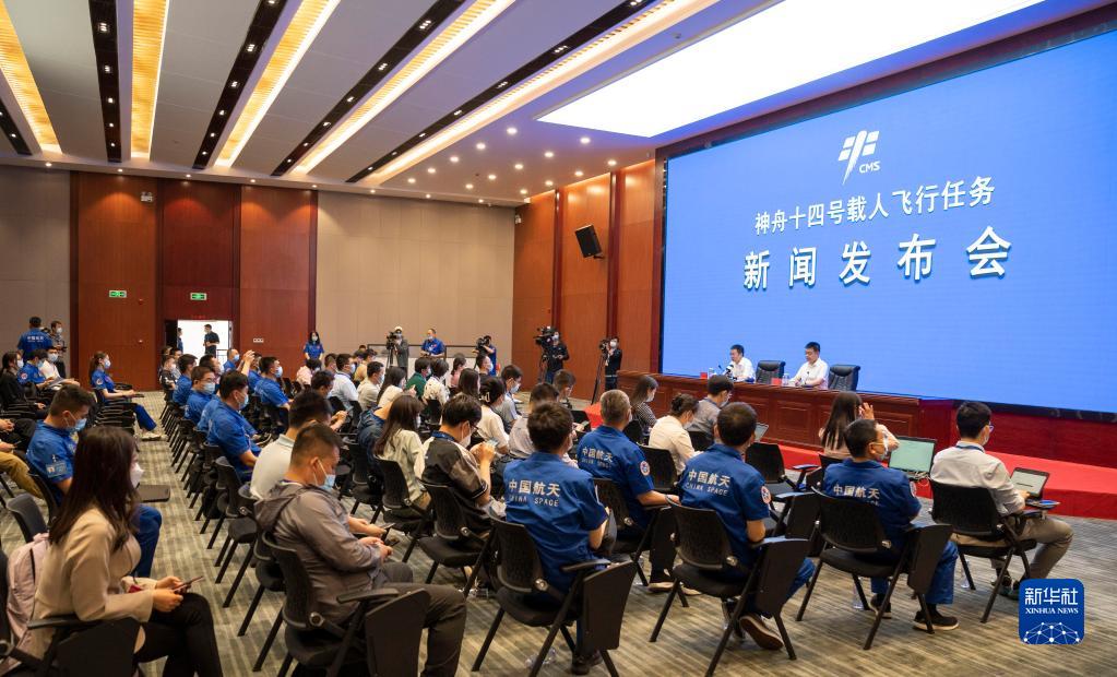 6月4日,神舟十四号载人飞行任务新闻发布会在酒泉卫星发射中心召开。新华社记者 才扬 摄