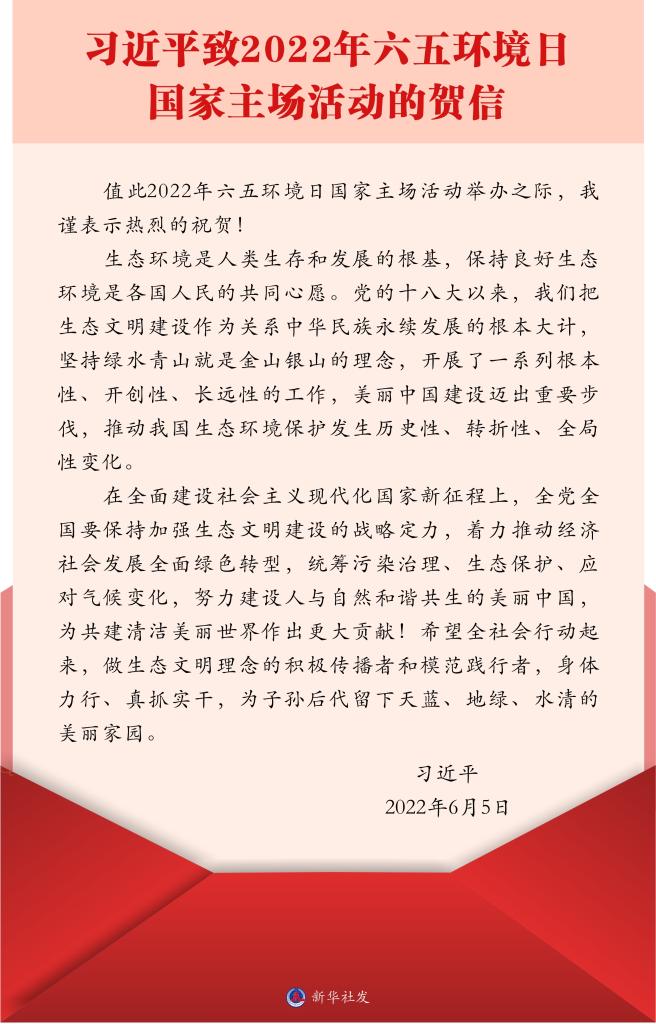 值此2022年六五环境日国家主场活动举办之际,我谨表示热烈的祝贺!