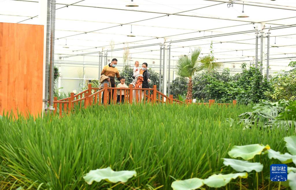 参观者在河北省石家庄市正定县塔元庄村“智慧农场”水稻展示区观赏(2021年10月20日摄)。新华社发(陈其保 摄)