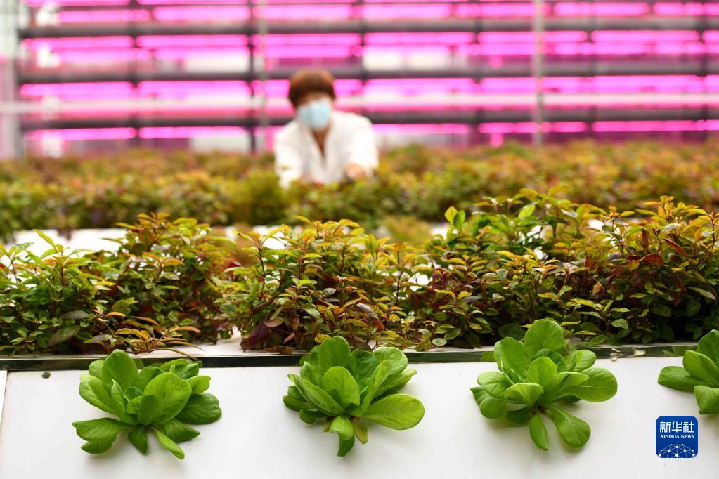 工作人员在河北省石家庄市正定县塔元庄村“智慧农场”温室内管护蔬菜(2021年10月20日摄)。新华社发(陈其保 摄)
