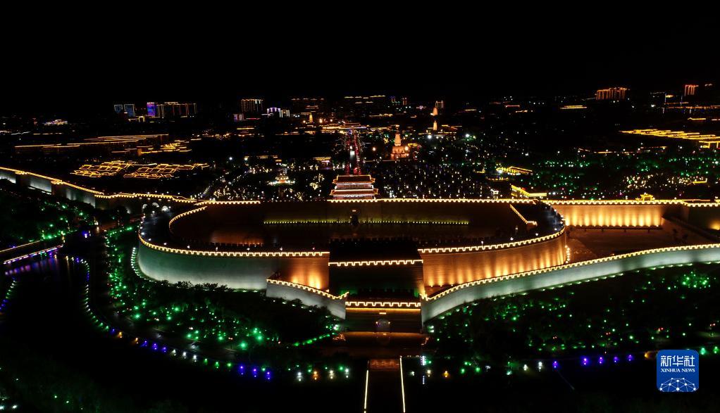 这是河北正定古城夜景(2021年7月1日摄,无人机照片)。新华社记者 朱旭东 摄