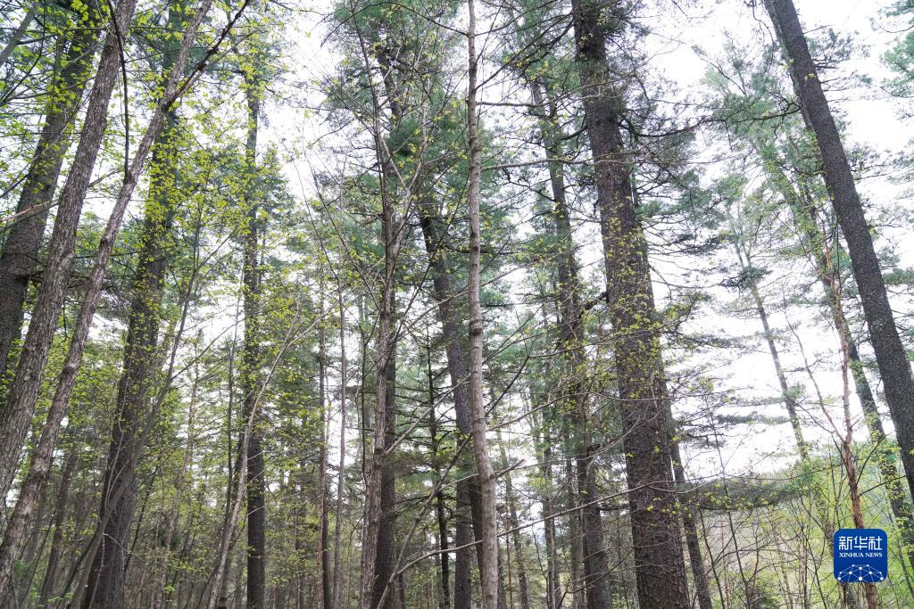 这是伊春市溪水国家森林公园内的红松(5月19日摄)。新华社记者王松摄
