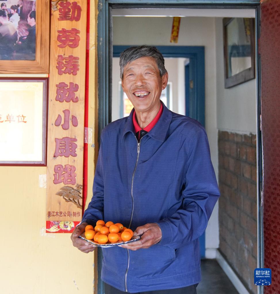 伊春森工上甘岭林业局公司溪水林场分公司退休职工刘养顺端着小西红柿准备招待游客(5月19日摄)。新华社记者王松摄