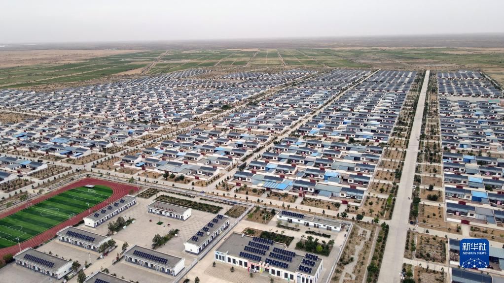 这是6月11日拍摄的甘肃省武威市古浪县黄花滩富民新村村貌(无人机照片)。新华社记者 张智敏 摄