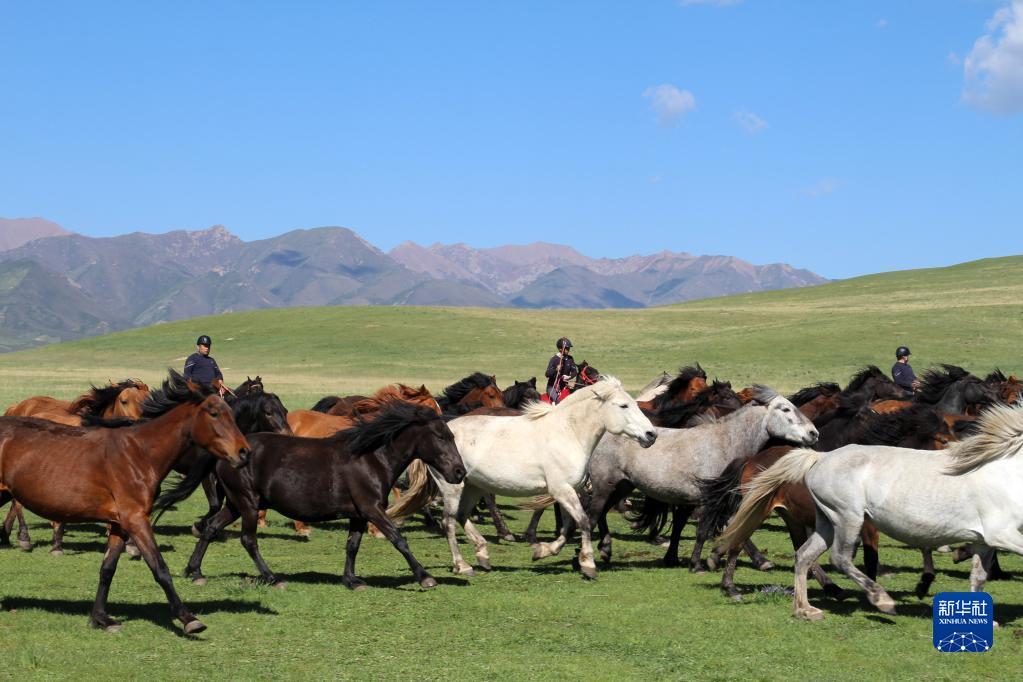 山丹马场一场的牧马人在放马,如今的山丹马场正努力打造国家优质马种质资源保护及速力型赛马培育基地(6月10日摄)。新华社记者 张智敏 摄