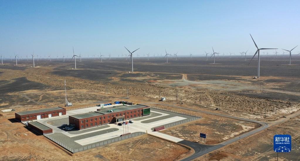 这是4月16日拍摄的甘肃省酒泉市境内的风电基地(无人机照片)。新华社记者 陈斌 摄