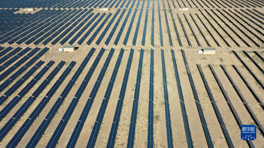 这是6月13日拍摄的甘肃省金昌市西坡光伏产业园区的光伏发电阵列(无人机照片)。新华社记者 陈斌 摄