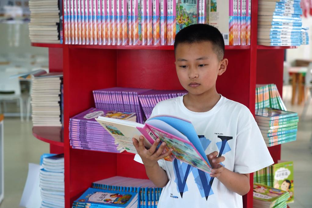 在武宁县第四小学,郭安哲正在阅读一本古诗图书(7月11日摄)。新华社记者 万象 摄