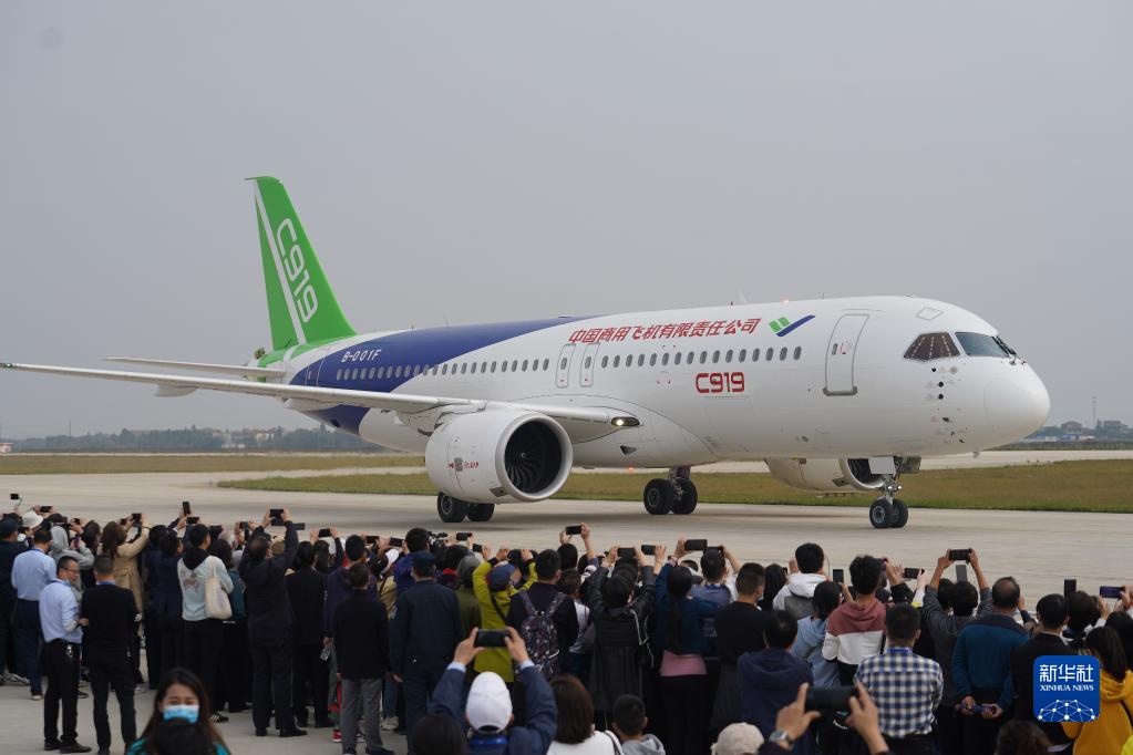 在2020南昌飞行大会上,国产大飞机C919亮相江西南昌瑶湖机场并进行飞行表演(2020年10月31日摄)。新华社记者 周密 摄