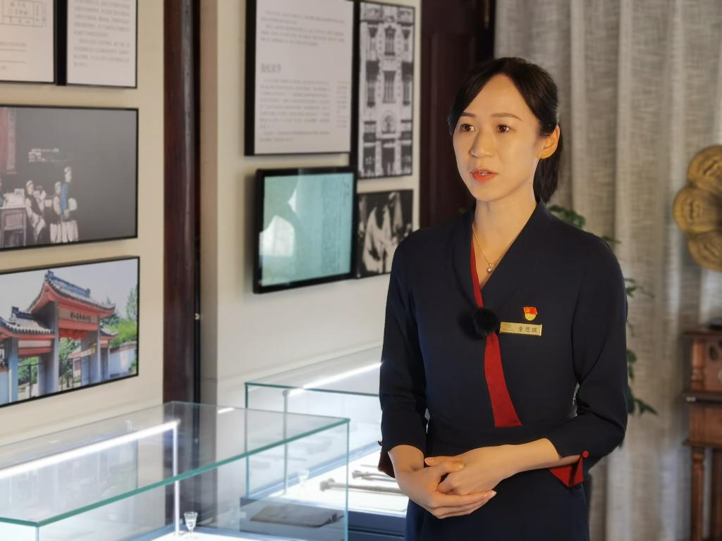 2022年6月9日,张人亚党章学堂讲解员童思琪在镜头前讲述张人亚的故事。新华每日电讯记者顾小立 摄