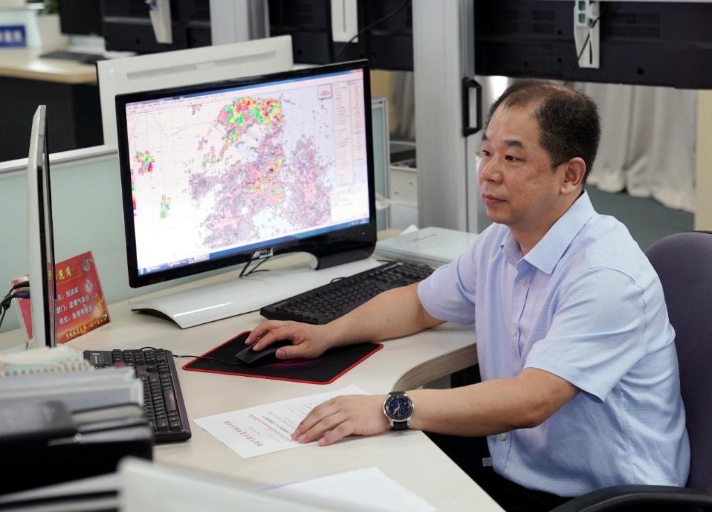 上海中心气象台首席预报员田洪军(8月16日摄)
