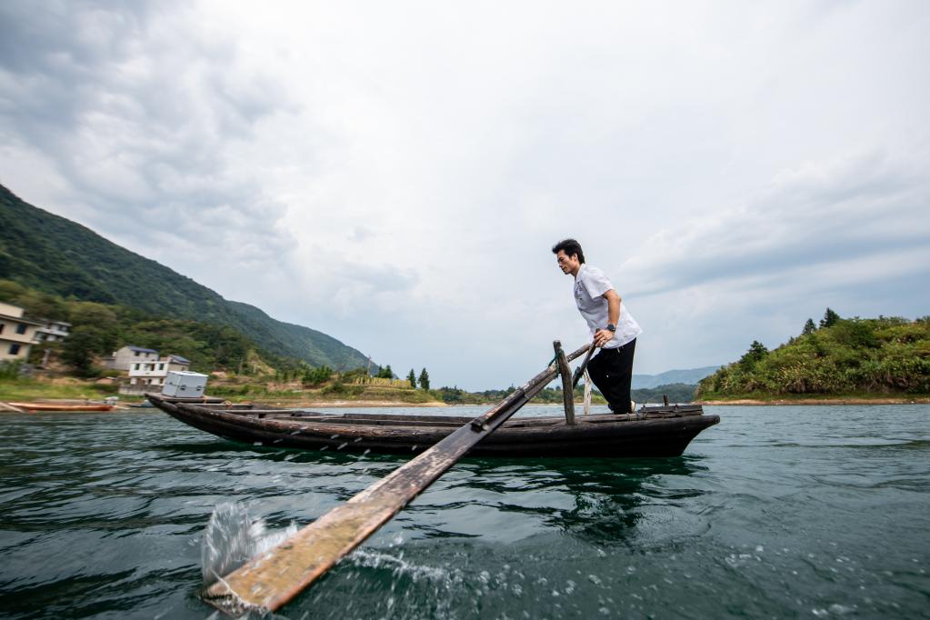 8月17日,尹传波独自划船前往村民家中随诊。新华社记者伍志尊 摄