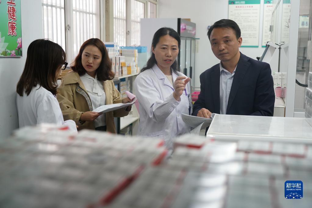 2019年10月31日,在江苏省海安市人民医院,巡察组工作人员在药房进行巡察,医疗卫生系统是此轮巡察重点。新华社记者 季春鹏 摄