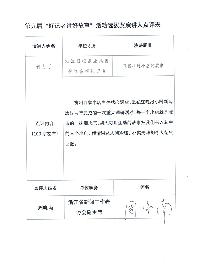 浙江日报报业集团钱江晚报 胡大可 编辑稿件