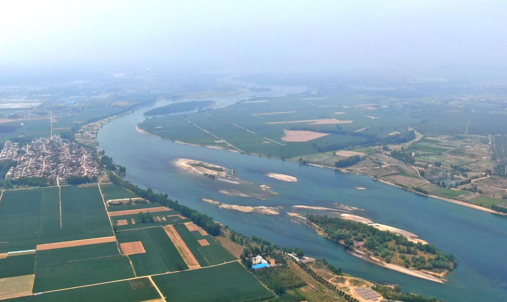这是2022年4月26日在河南黄河湿地国家级自然保护区孟津段拍摄的黄河景色(无人机照片)。 新华社记者 郝源 摄