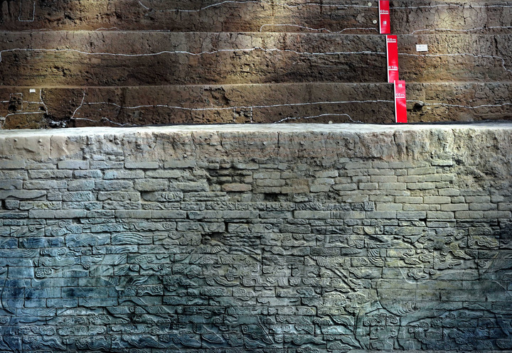 在开封顺天门城摞城遗址中,时间是立体的。通过层层叠压的地层剖面,一眼就能分辨出年代的远近。考古人员说,在地下0米至14米处,自下而上叠压着战国、五代、宋金、元、明、清等不同时期的6座城池。这样的奇特景观,其实是一次次灾难的见证。辉煌的文明无数次被黄河泥沙冲毁掩埋,灾难过后,人们就地站起,城市一次次涅槃重生。