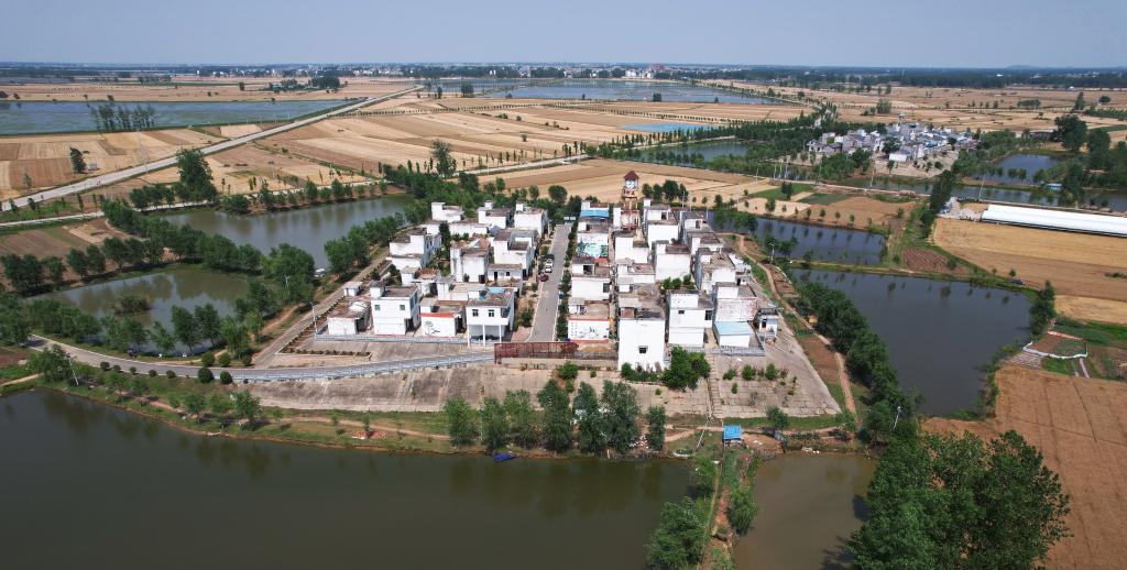 这是2022年5月30日拍摄的安徽省阜阳市阜南县曹集镇利民村西田坡庄台(无人机照片)。新华社发(王彪 摄)