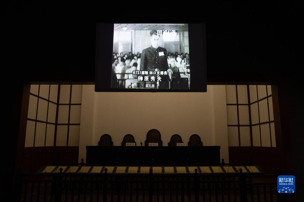 这是在侵华日军第七三一部队罪证陈列馆内播放的影像证据(12月10日摄)。新华社记者 张涛 摄