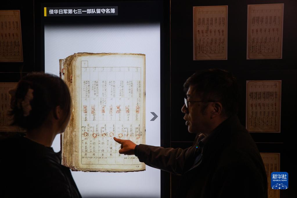 12月10日,在侵华日军第七三一部队罪证陈列馆,工作人员在介绍新展出的《关东军防疫给水部留守名簿》。新华社记者 张涛 摄