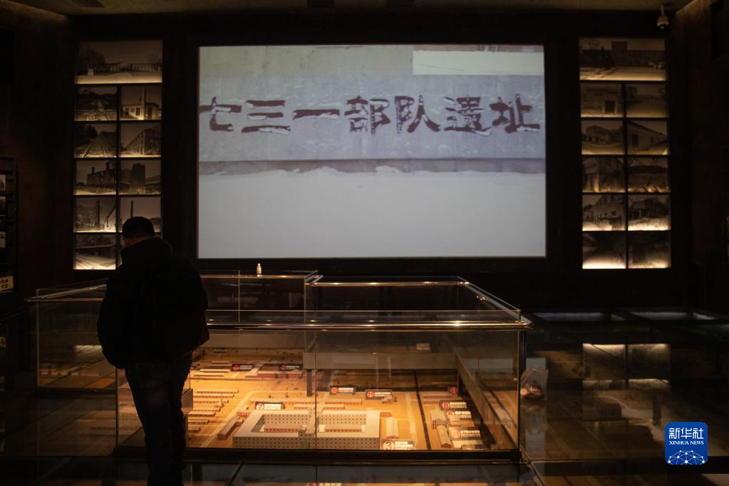 12月10日,在侵华日军第七三一部队罪证陈列馆内,一名工作人员在观看完成改陈的展区。新华社记者 张涛 摄
