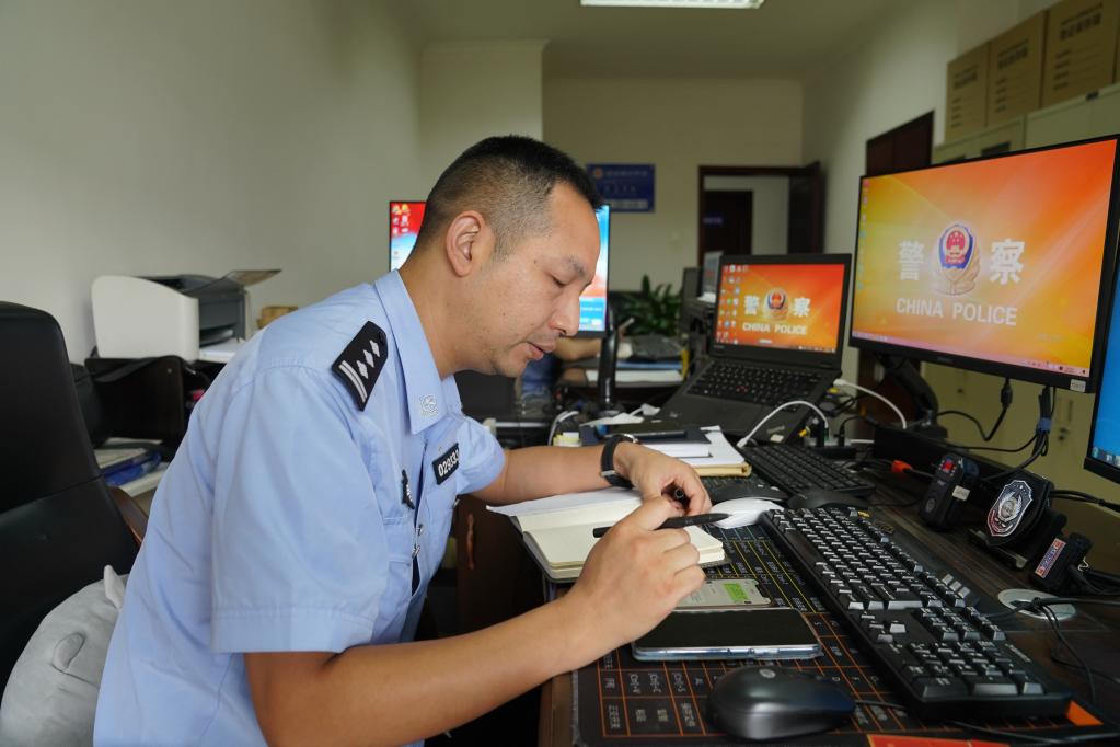 工作中的民警胡祥雨。(绵阳市公安局供图)
