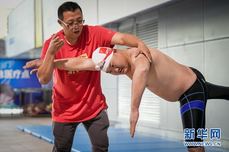 李俊在常熟市游泳馆接受教练训练。