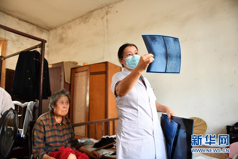 颜新艳在查看村民的X光片。