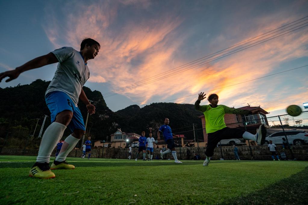 平日里,村民们白天干活,晚上一有时间就来球场踢踢球。过年前后,足球氛围尤其浓厚。