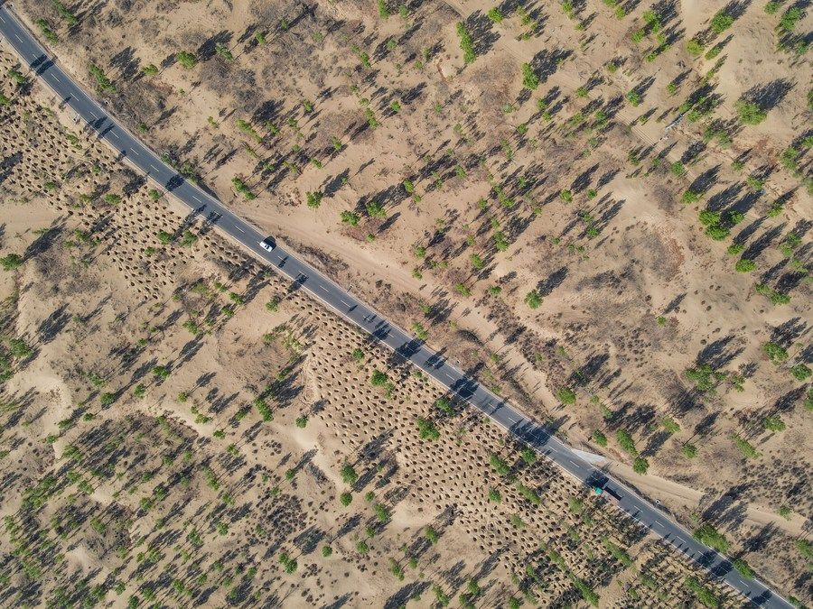 在内蒙古自治区库布其沙漠,一匹占地130多万平方米的“骏马”横卧其中。