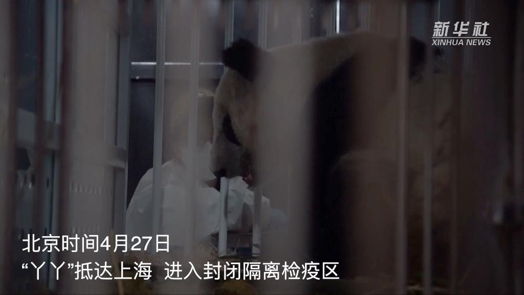旅美大熊猫“丫丫”于北京时间4月27日抵达上海并于当天前往封闭隔离检疫区。