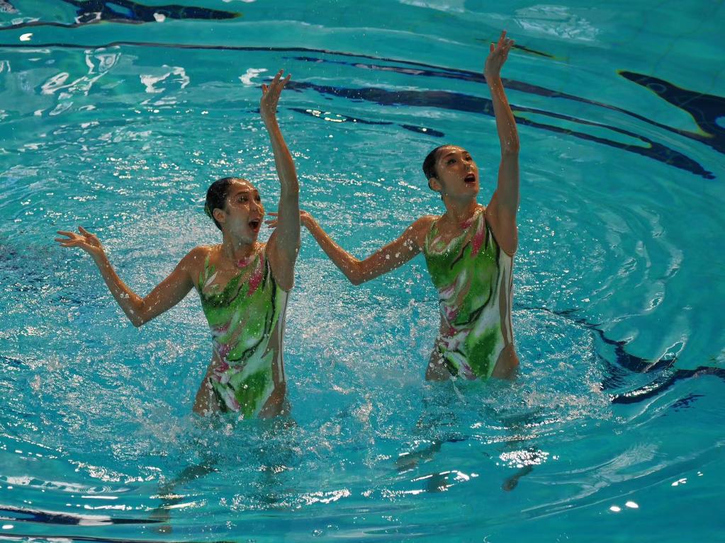 5日,王柳懿和王芊懿在比赛中。图片来自中国花样游泳队