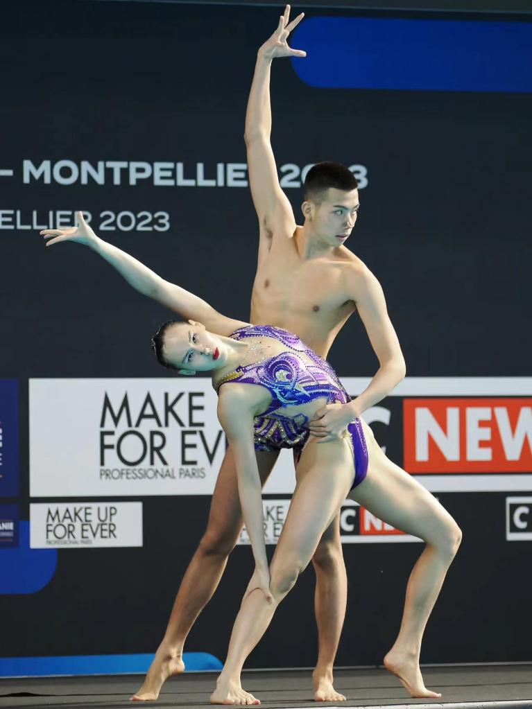 5日,石浩玙和张依瑶在比赛中。图片来自中国花样游泳队