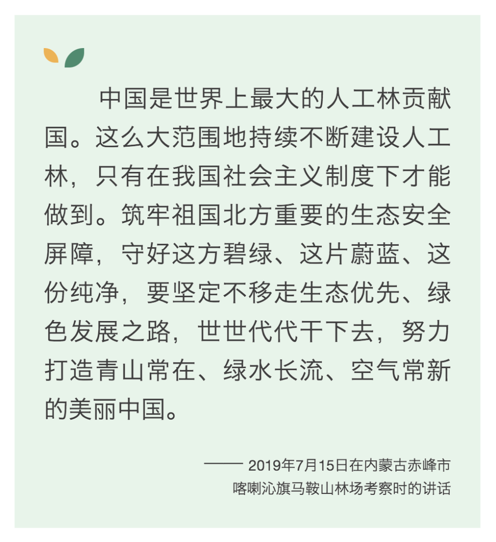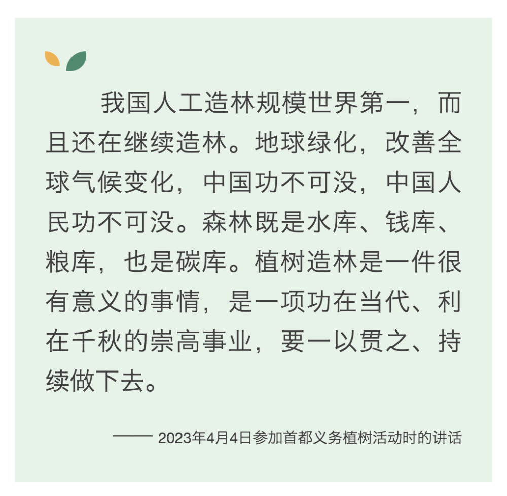 习近平总书记高度重视国土绿化,多次参加植树造林,前往实地考察,作出重要指示。