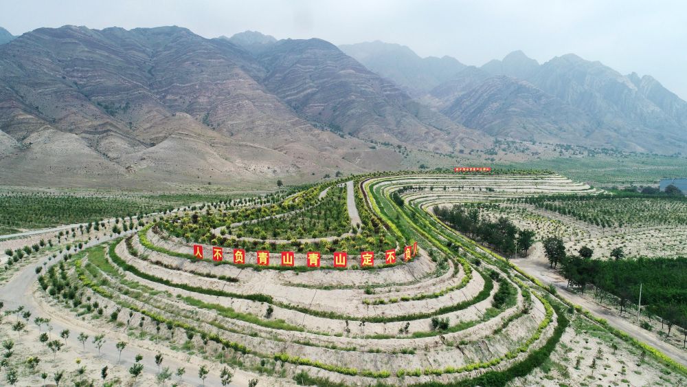 位于宁夏石嘴山市平罗县崇岗镇的贺兰山东麓黄屯子生态修复治理工程(2022年8月2日摄)。
