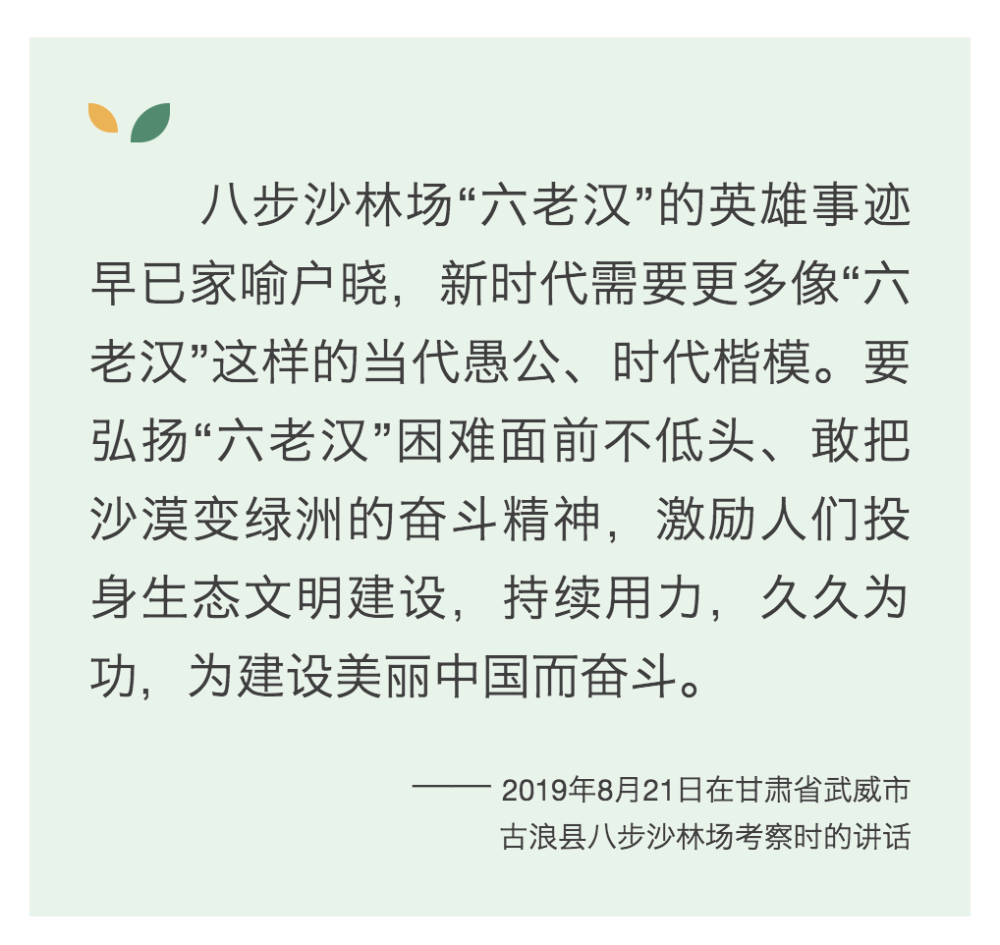 2019年8月21日,习近平在甘肃省武威市古浪县八步沙林场,实地察看当地治沙造林、生态保护等情况。