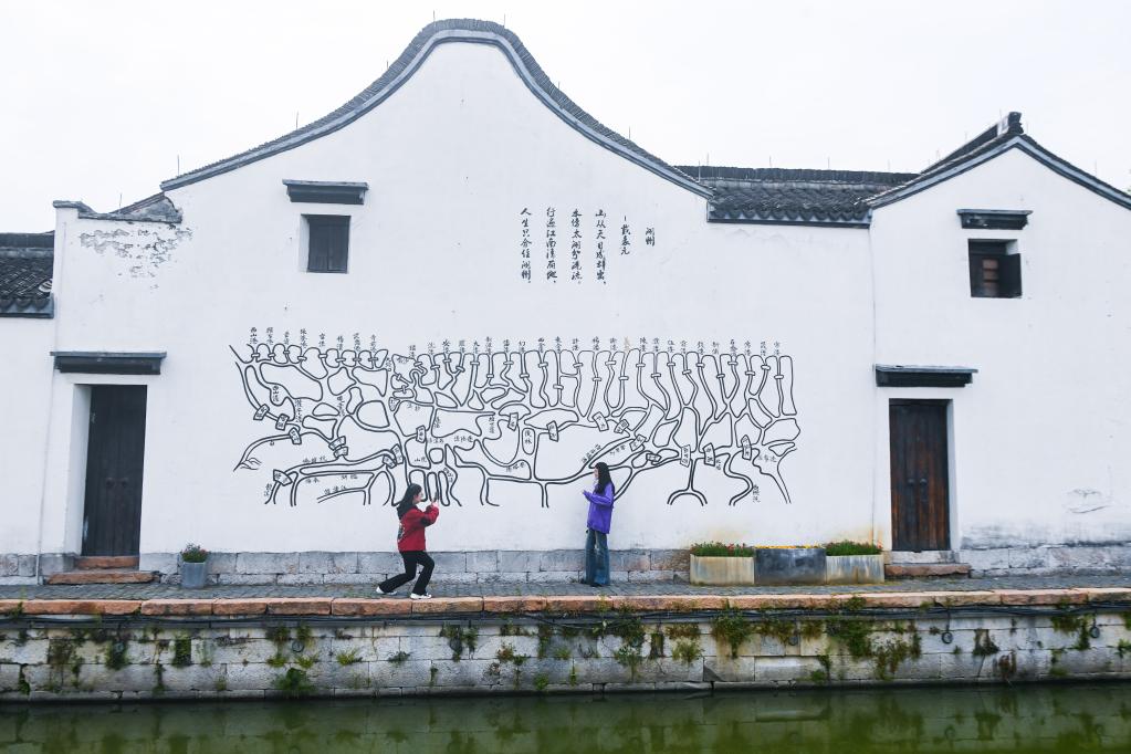图为游客在位于太湖南岸的浙江湖州吴兴区织里镇义皋村的古村落景区游览。新华社记者徐昱 摄