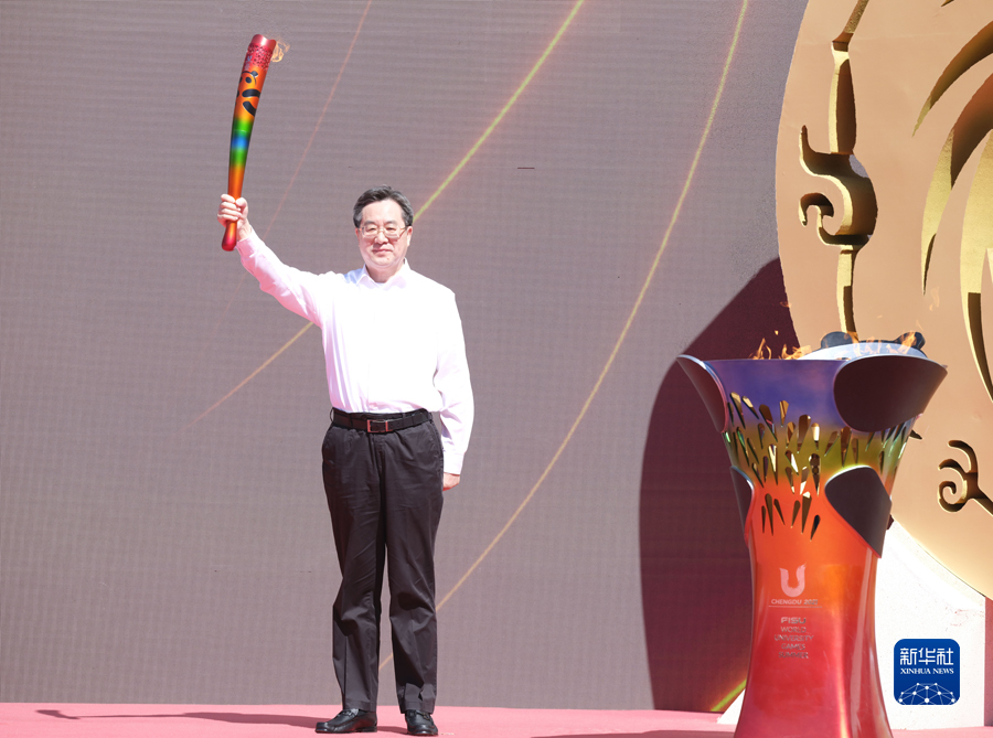 6月10日,成都第31届世界大学生夏季运动会火炬传递启动仪式在北京举行。中共中央政治局常委、国务院副总理丁薛祥出席仪式,点燃成都大运会火炬,并宣布火炬传递开始。新华社记者丁林摄